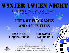 For more information call 206-801-2600 or see the Facebook page at Shorelineteenprogram